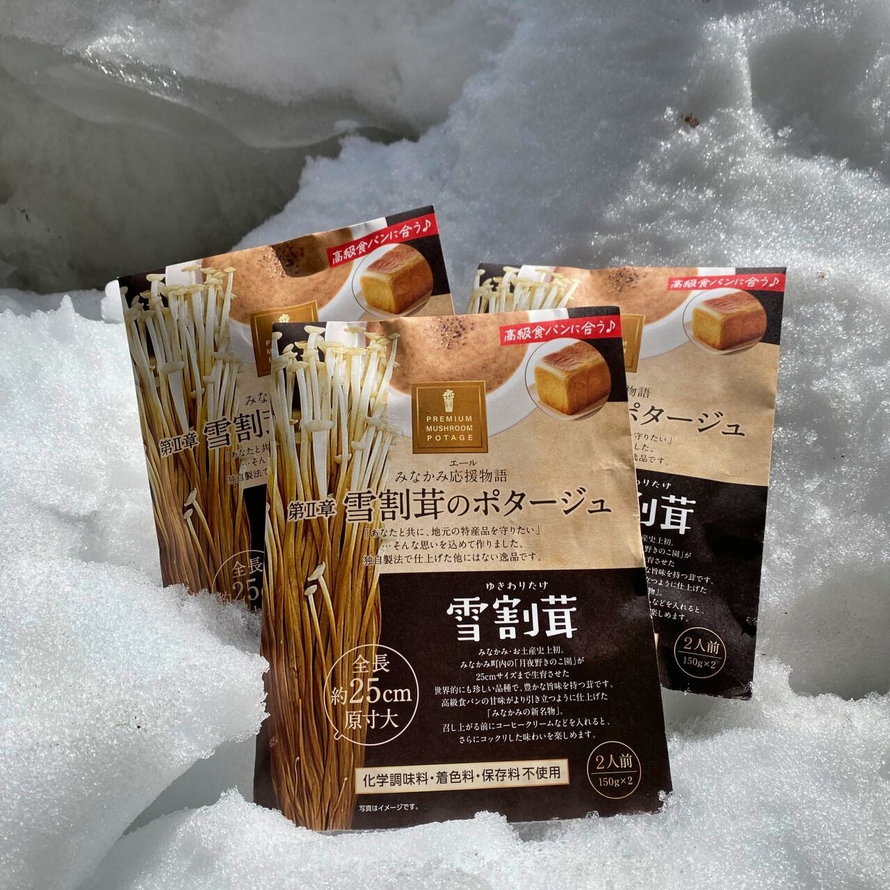 大変珍しい茸「雪割茸(ゆきわりだけ)」という品種を使ったレトルトポタージュです。